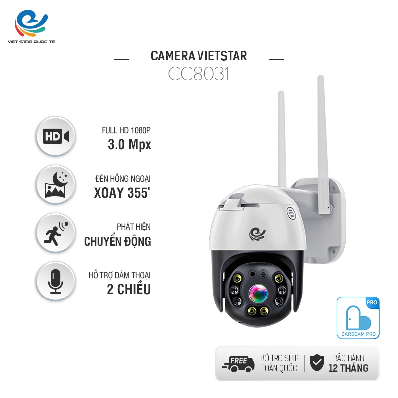 Camera wifi ngoài trời xoay 360 chống nước Camera An Ninh Việt Star Quốc Tế YS8031, 3.0 MPx 1080P có kết nối máy tính
