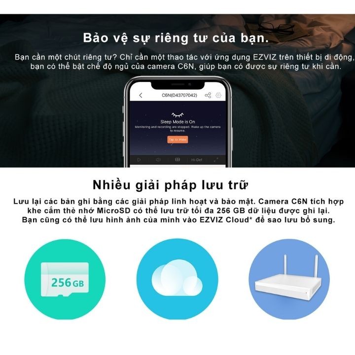•Hỗ trợ wifi + cài đặt wifi thông minh với phần mềm EZVIZ - quá trình cài đặt chỉ mất vài phút với người lần đầu sử dụng