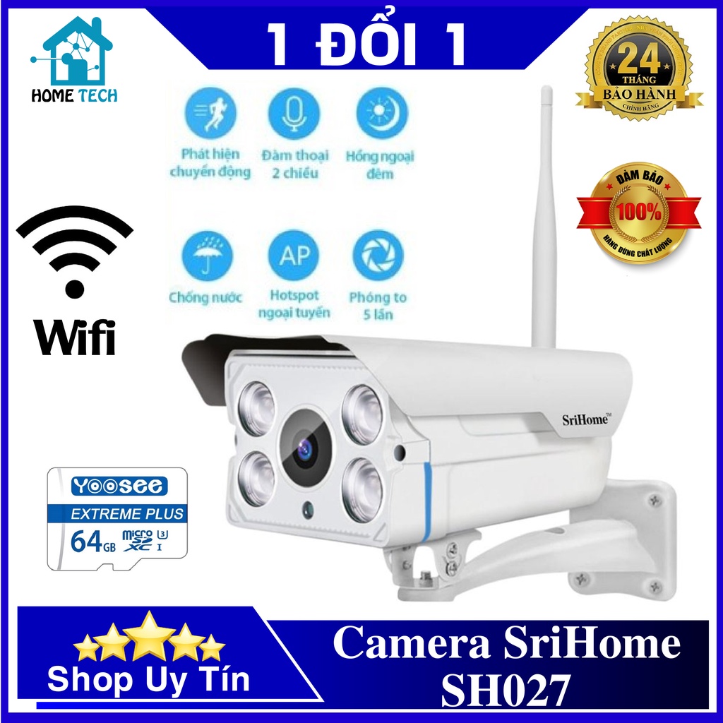 Camera Wifi SriHome SH027(1080P) - Camera IP Wifi ngoài trời- Model: SH027