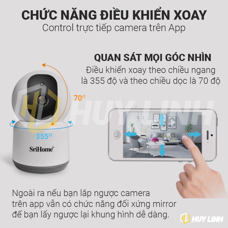 Máy tính & Laptop > Thiết Bị Mạng > Bộ Phát Wifi || [Mã 273ELHA100K0 hoàn 7% đơn 500K] Camera Wifi Srihome SH038 4.0MP - Xem đêm có màu hỗ trợ băng tần 5G lắp trong nhàCòn hàng