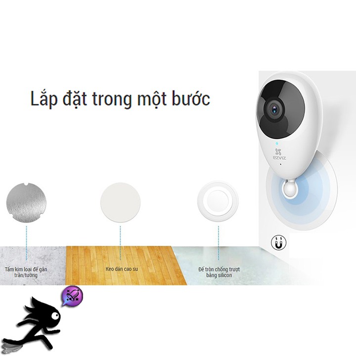 Camera Wifi Mini Trong Nhà Ezviz CS-CV206 sở hữu kiểu dáng độc đáo, nhỏ gọn, trang nhã kết hợp chân đế vững chắc giúp bạn dễ dàng lắp đặt mọi vị trí trong không gian nội thất gia đình, cơ quan, cửa hàng, nhà máy, siêu thị, tòa nhà, trường học… Đế của camera này được làm bằng nam châm từ tính giúp dính chặt trên bề mặt kim loại. Hoặc bạn cũng có thể sử dụng đế tích hợp kèm để gắn lên mọi chất liệu theo yêu cầu quan sát như tường, trần nhà, nóc tủ, kiếng, gỗ. Camera MINI O CS-CV206 là sản phẩm được lắp đặt trong nhà.