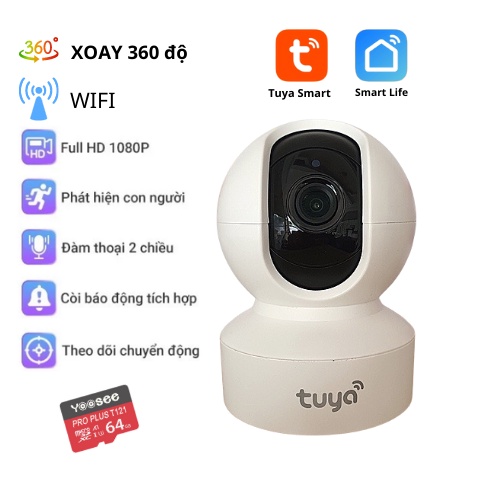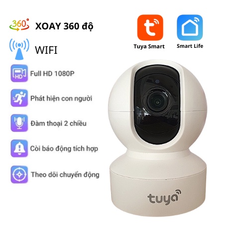Wifi Tuya Camera FullHD 1080p, H264, hồng ngoại, đàm thoại hai chiều, cảnh báo chuyển động.