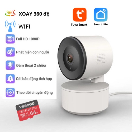 Wifi Tuya Camera FullHD 1080p, H264, hồng ngoại, đàm thoại hai chiều, cảnh báo chuyển động.