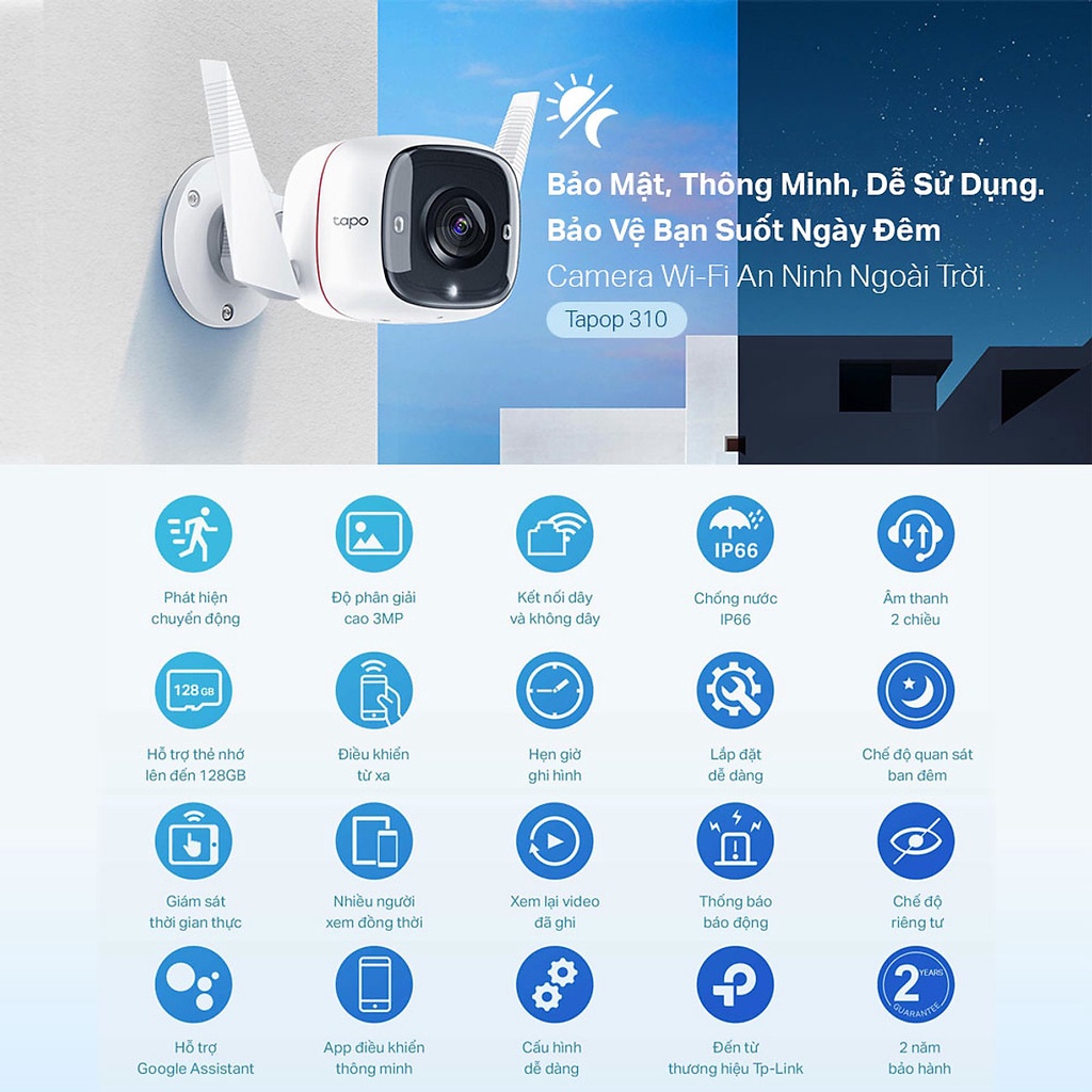 Camera Wifi TPLink Tapo C310 3MP Giám sát An Ninh Ngoài Trời Hàng Chính Hãng