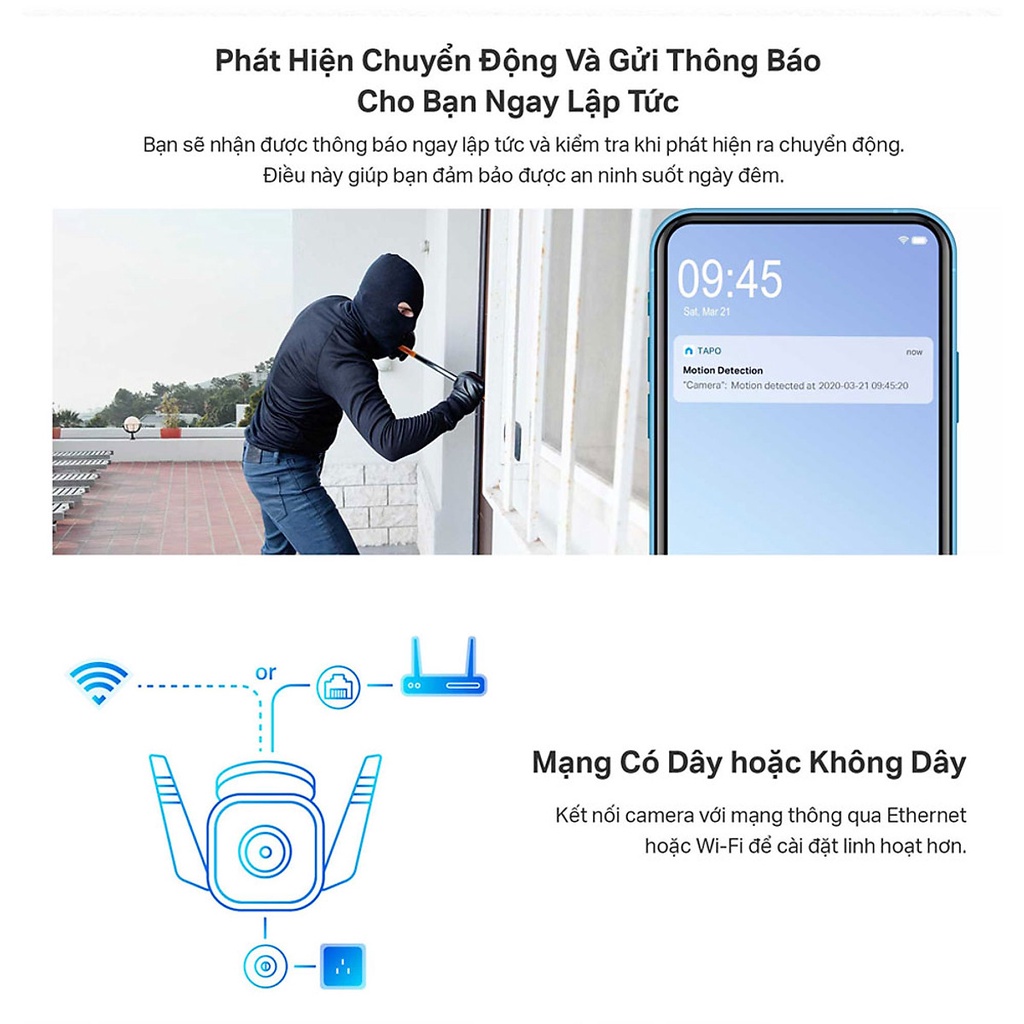 - Lưu Trữ An Toàn: Lưu trữ nội bộ video 3MP lên đến 128 GB trên thẻ nhớ microSD, giúp truy cập thuận tiện vào cảnh quay video của bạn ( sản phẩm không bao gồm thẻ nhớ )
