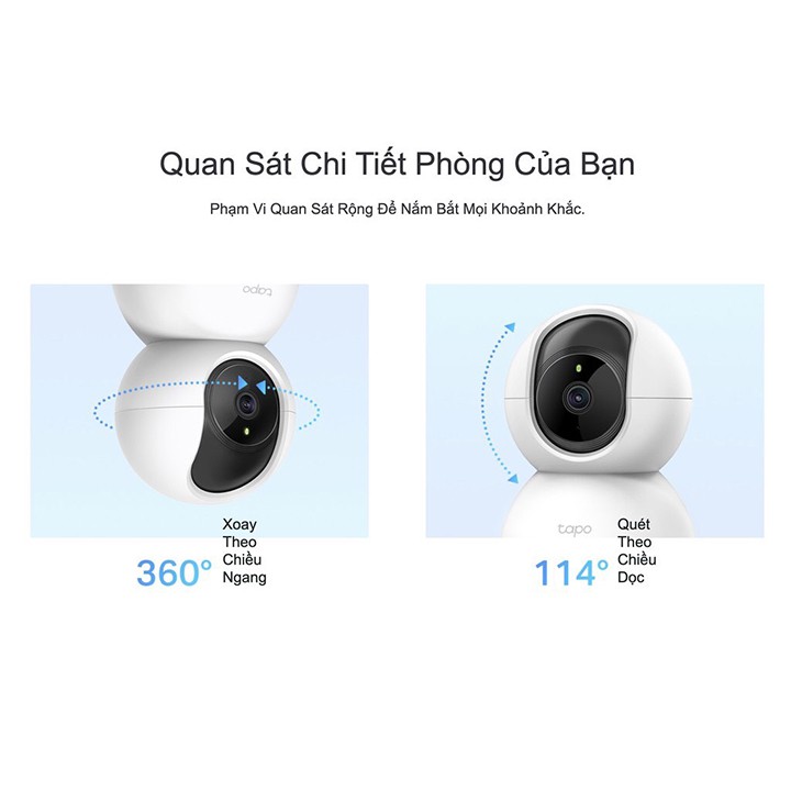 - Phạm Vi Quan Sát Rộng Để Nắm Bắt Mọi Khoảnh Khắc: Xoay 360 độ theo chiều ngang, quét 114 độ theo chiều dọc