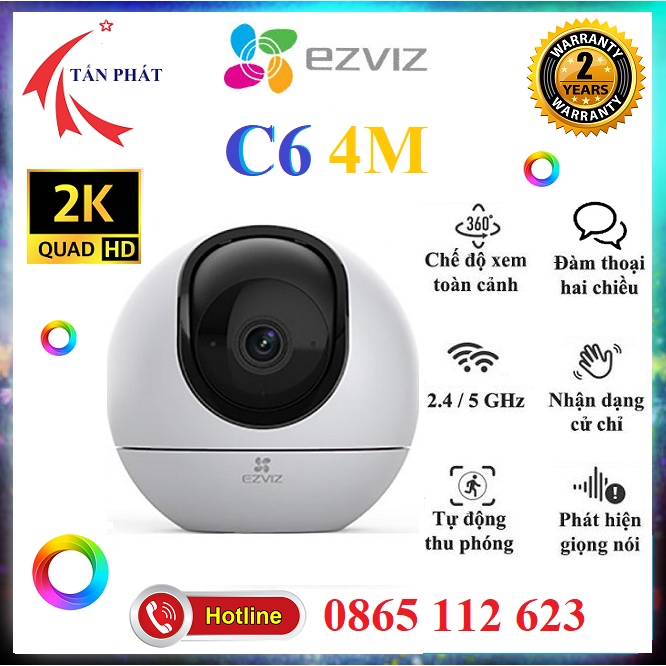 Camera WIFI Trong Nhà, XOAY 360, EZVIZ C6 4M 2K+, Siêu Nét C6w C6n Hàng chính hãng, bảo hành 24 tháng