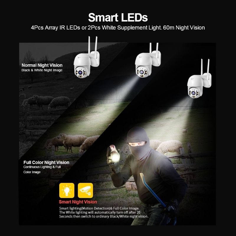 Tính năng đặc biệt: PAN-TILT, TẦM NHÌN ĐÊM, Âm thanh hai chiều, phát hiện chuyển động, Chống thấm nước / Thời tiết
