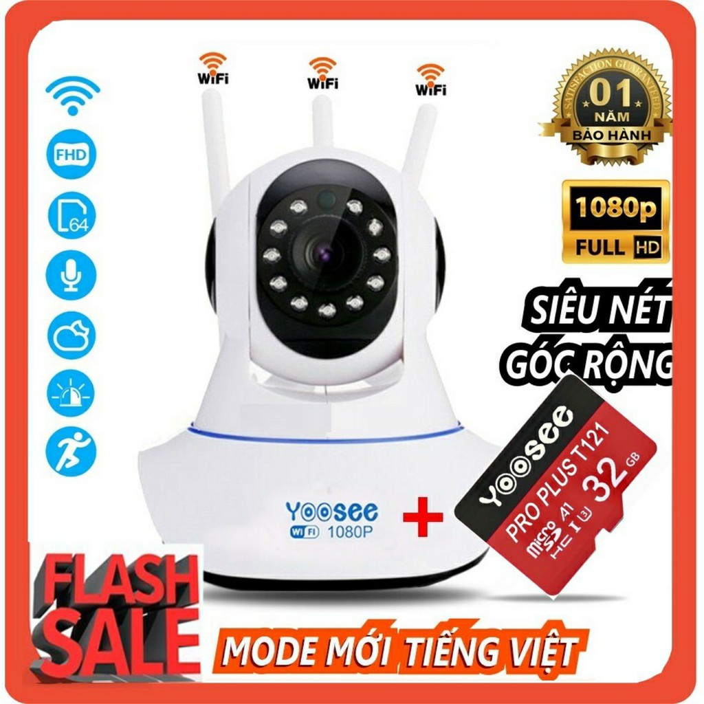 Camera Yoosee 3 anten 2.0MP, Báo động chống trộm, dò chuyển động ,Fullbox 100%