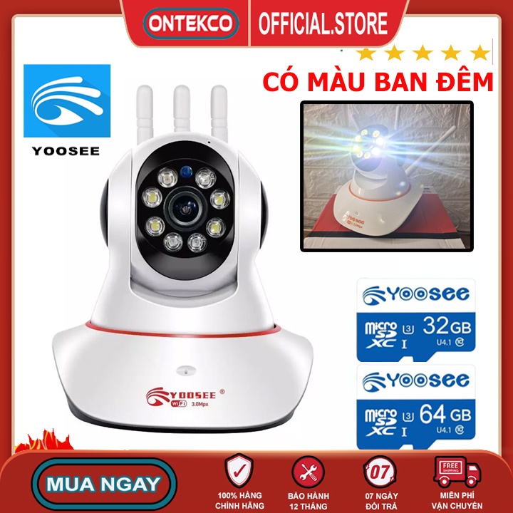 Camera Yoosee 3 Râu Trong Nhà Ban Đêm Có Màu Full HD 1080P
