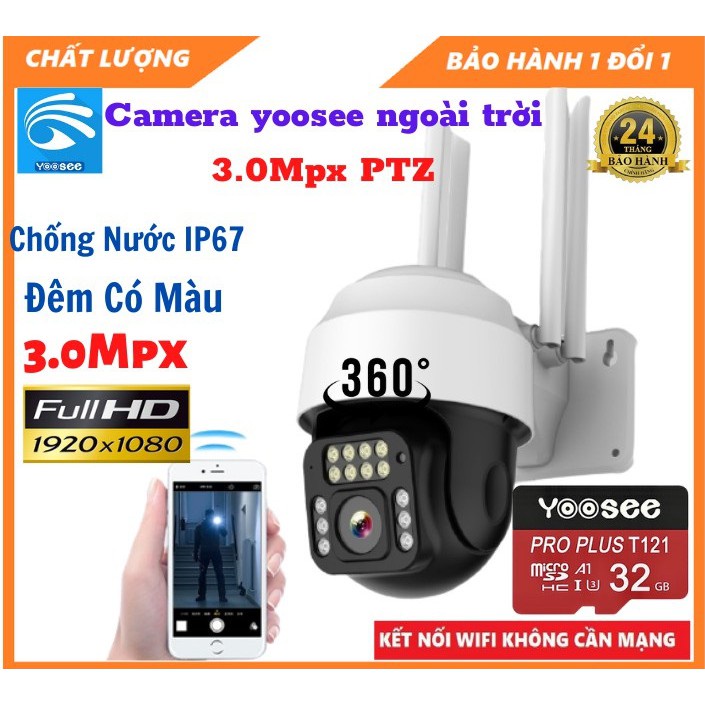 Camera YOOSEE ngoài trời PTZ 3.0 MPX mắt nhện - Quay Nét Đêm Có Dàm Thoại 2 Chiều