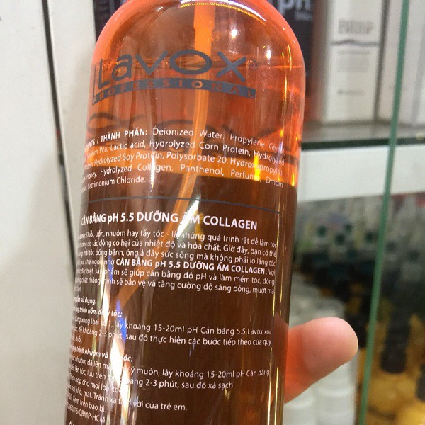 Sau khi dùng xong loại số 1, lấy khoảng 15-20ml pH Cân bằng 5.5 Lavox xoa đều lên tóc, để khoảng 2-3 phút, sau đó thực hiện các bước tiếp theo của quy trình uốn, duỗi.