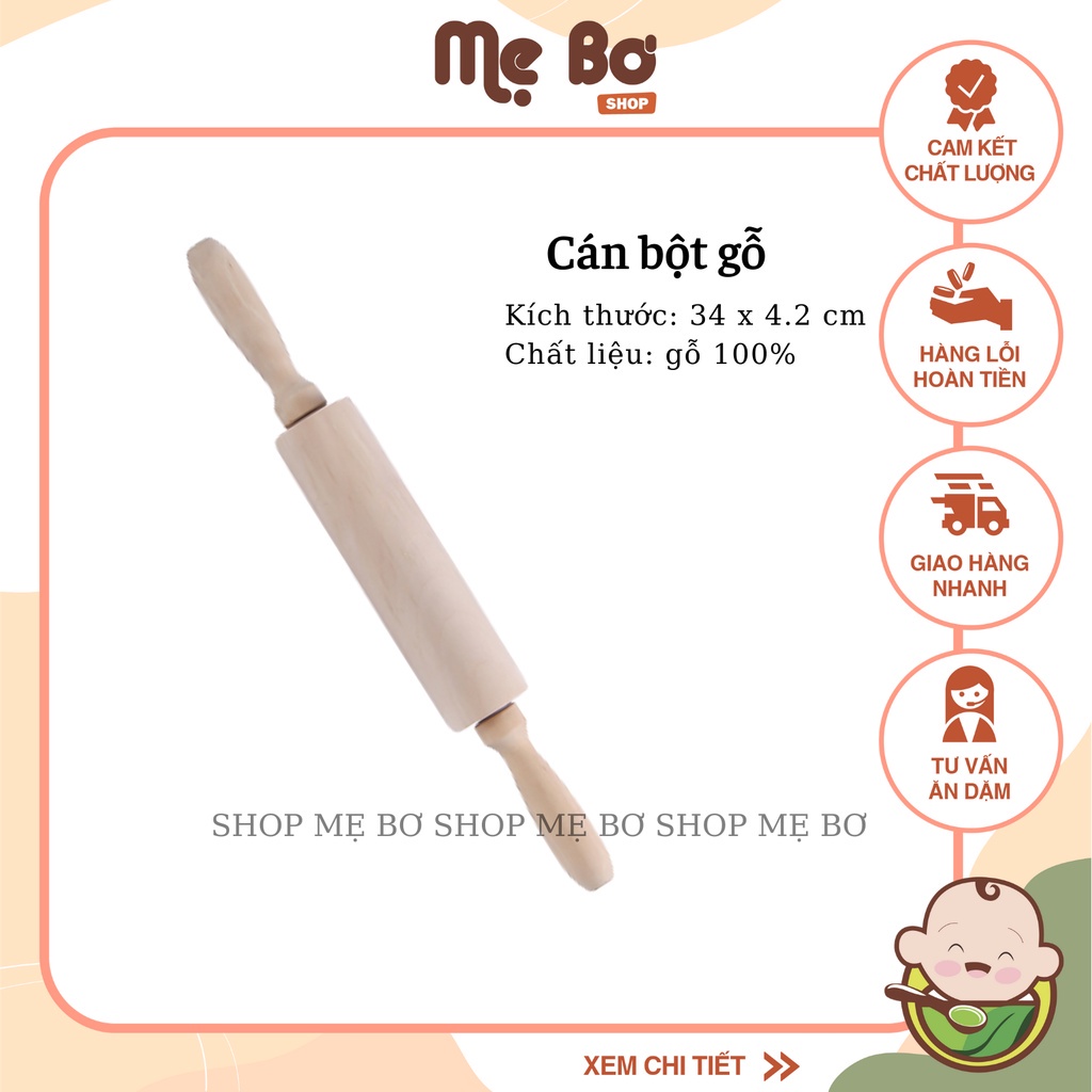 Cán lăn bột gỗ làm bánh✔️Chất liệu: gỗ 100%