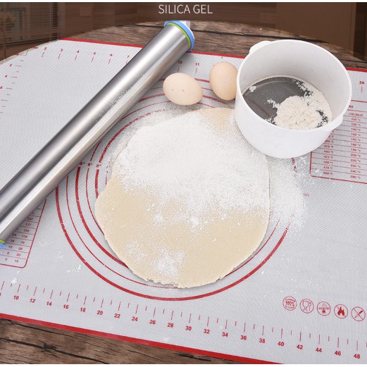 Cây cán bột inox + thảm silicon- Gồm 1 cây cán bột + 1 thảm silicon