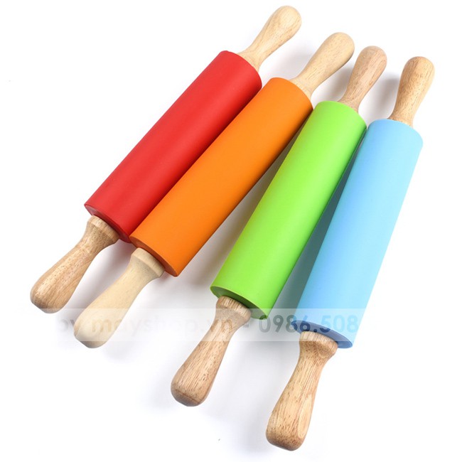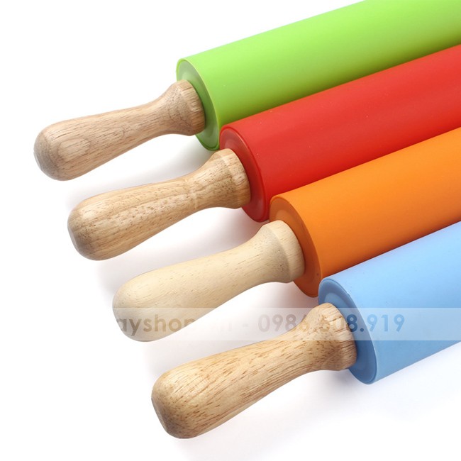 Cán bột silicone trục xoay, cán cầm bằng gỗ hoàn thiện cao cấp.MAYSHOP giao màu ngẫu nhiên.