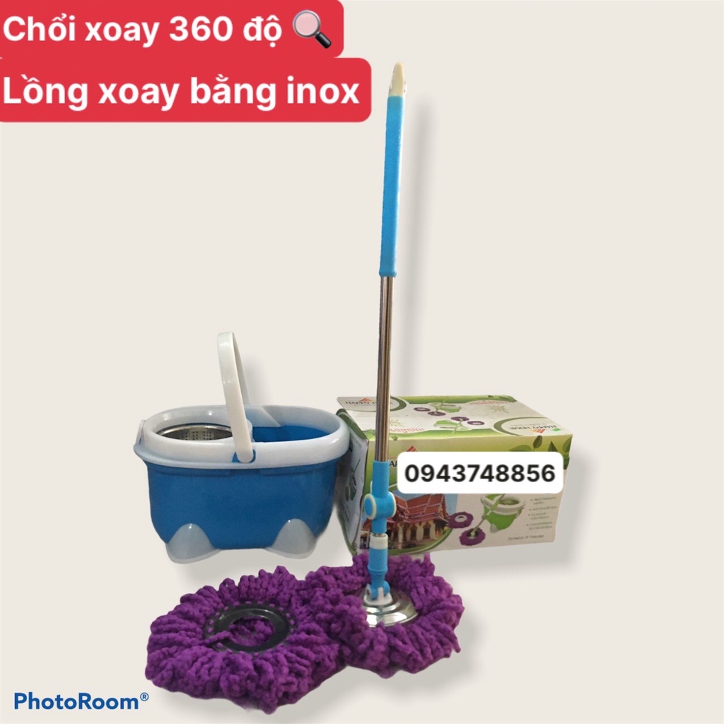 Bộ lau nhà 360 kèm sẵn 02 bông lau nhà gắn vào chổi lau nhà có thể thay thế khi hư (có thể mua thêm Bông lau nhà tại Shop)