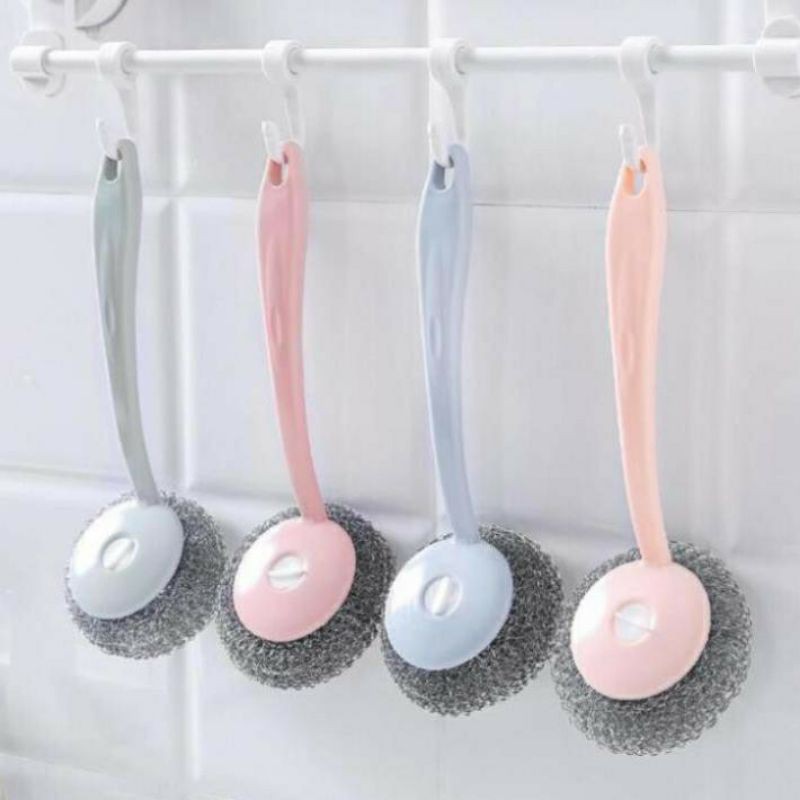 Cây cọ xoong nồi búi sắt có tay cầm tiện lợi-Dụng cụ chà rửa thông minh giúp bạn cọ tẩy nhanh những vết bẩm cứng đầu trên xoong, nồi, chảo mà không cần phải mất quá nhi ều thời gian, không lo hại da tay