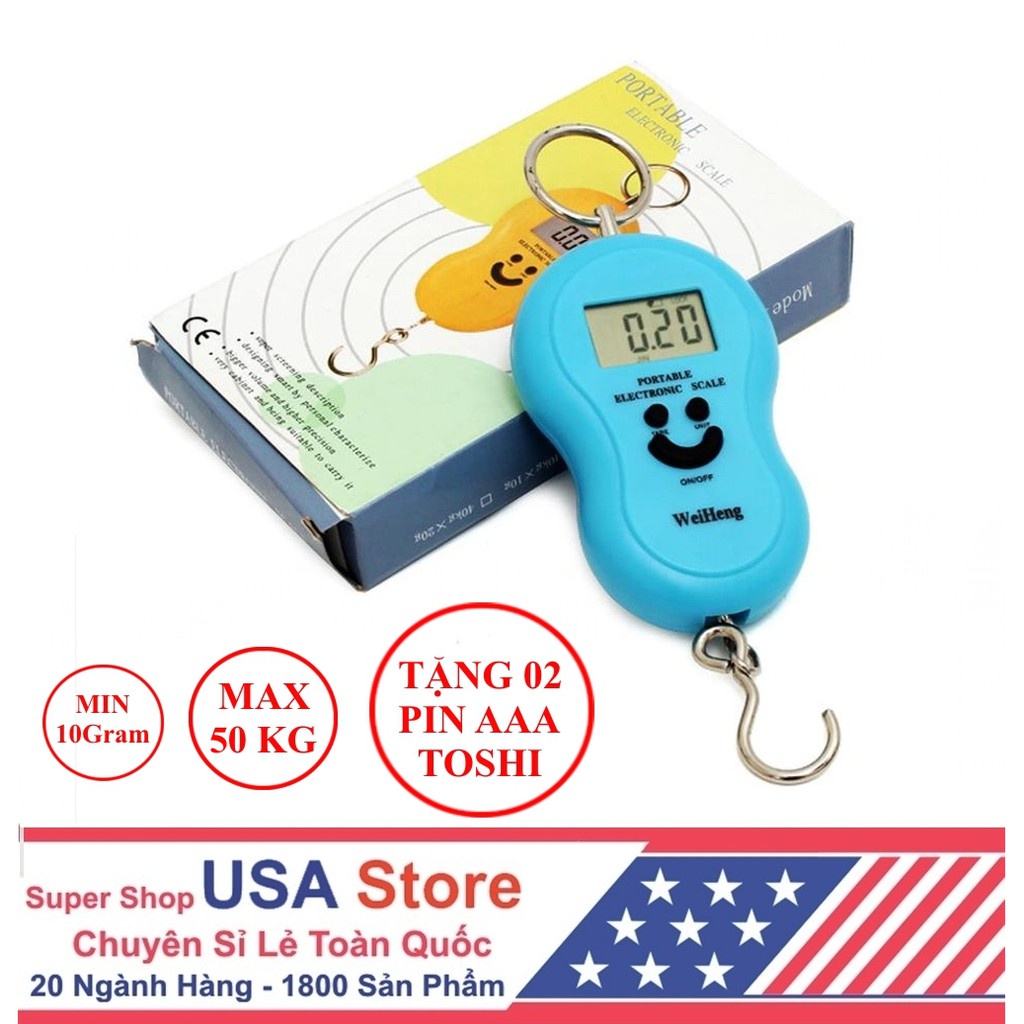 Cân Điện Tử Mini Cầm Tay Mặt Cười - Tiện Dụng USA Store (10G - 50Kg) - Tặng 02 Pin AAA