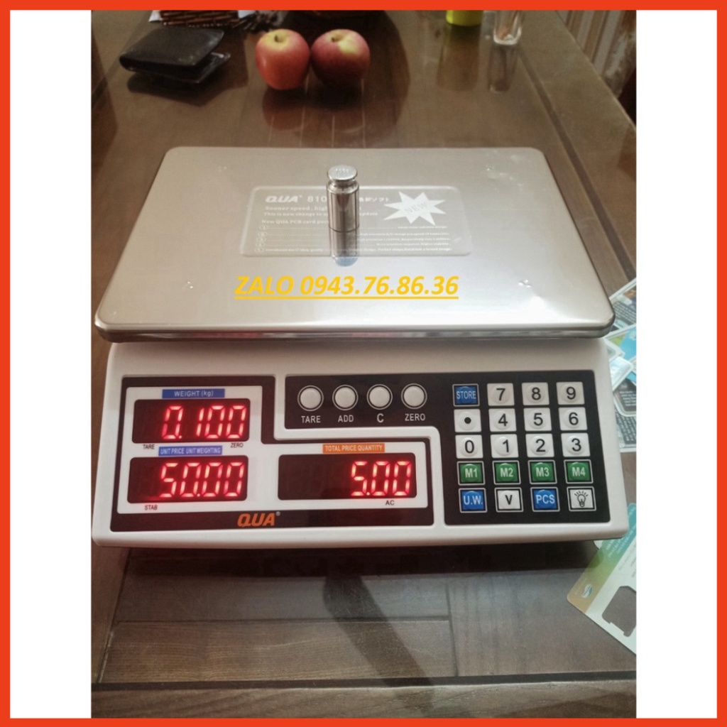 Cân Điện Tử 30kg Tính Giá Tiền QUA 810 - Màn Hình Trước Sau Hiển Thị Led Đỏ