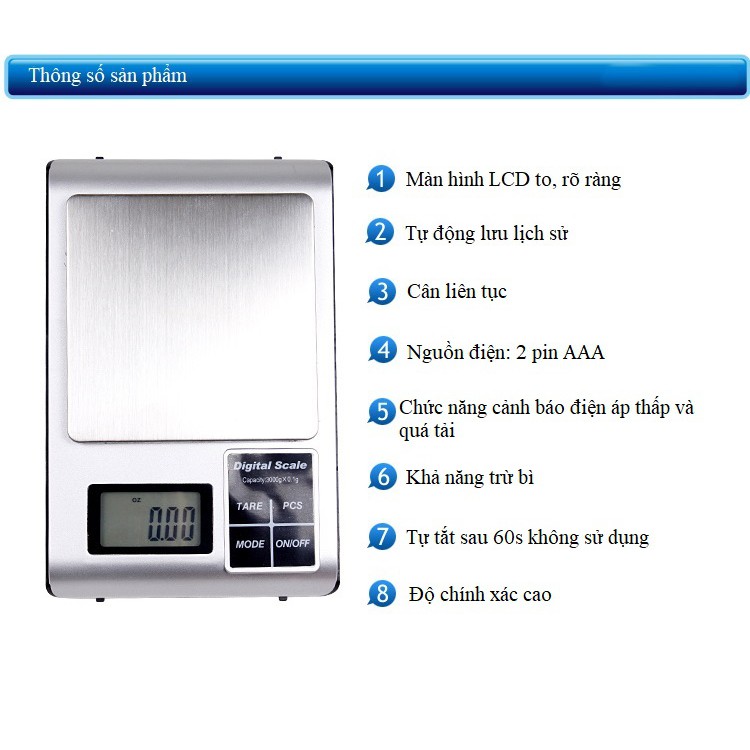 Giới thiệu Cân Điện Tử 3kg/0.1g DH-5KW ( TẶNG ĐĨA CÂN NHỰA )