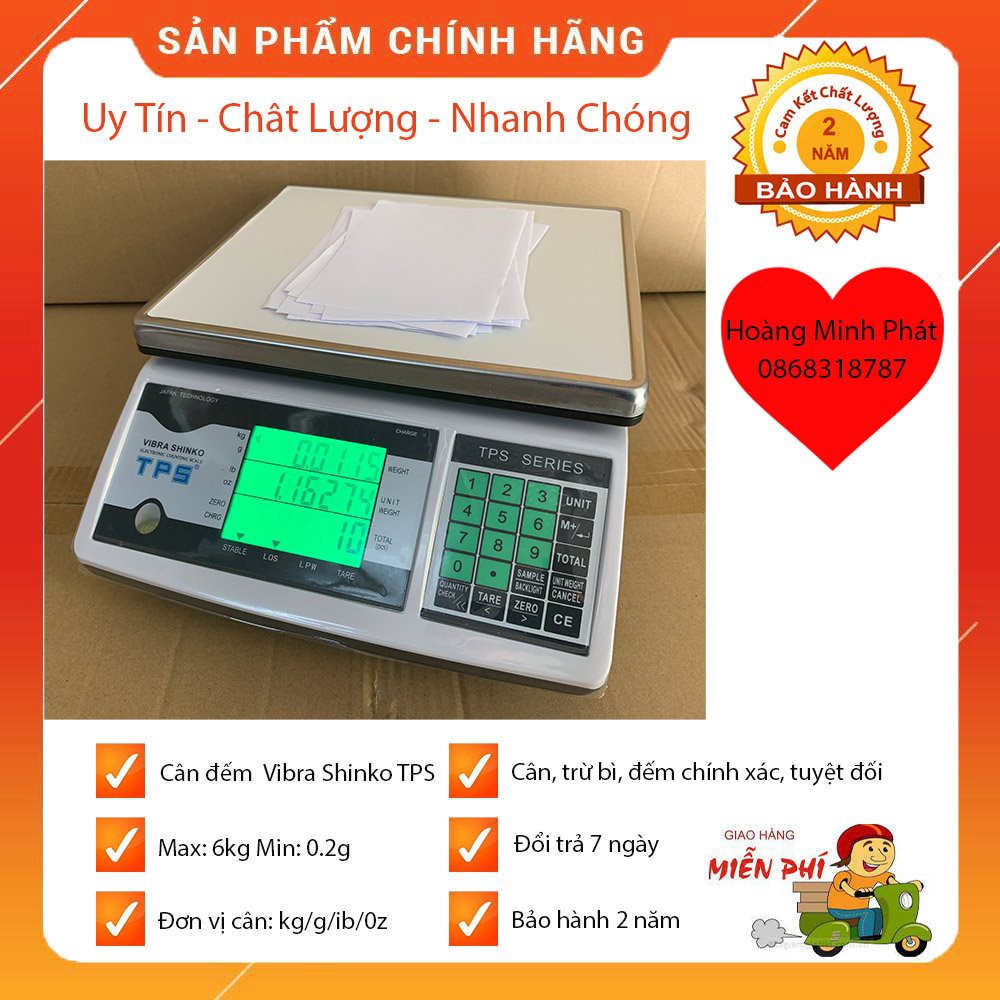 - VIBRA TPS6C là mẫu cân đếm thông dụng với đĩa cân lớn và độ chính xác đến từng g ứng dụng nhiều ngành như, đếm mẫu linh kiện điện tử, các vi mạch điện tử rất nhỏ, nhãn áo, nút, phi áo trong ngành may, tem bảo hành, nhãn giấy, nhãn decal trong ngành in ấn, VIBRA TPS có Bàn phím và màn hình rõ ràng, Cảm ứng lực loadcell nhãn hiệu LAB do LCT sản xuất theo tiêu chuẩn OIMLR60, IP67.