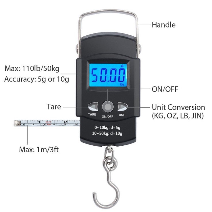 Nhà cửa & Đời sống > Dụng cụ & Thiết bị tiện ích > Dụng cụ > Dụng cụ đo lường || CÂN ĐIỆN TỬ CẦM TAY MINI 50KG NHỎ GỌNCòn hàng