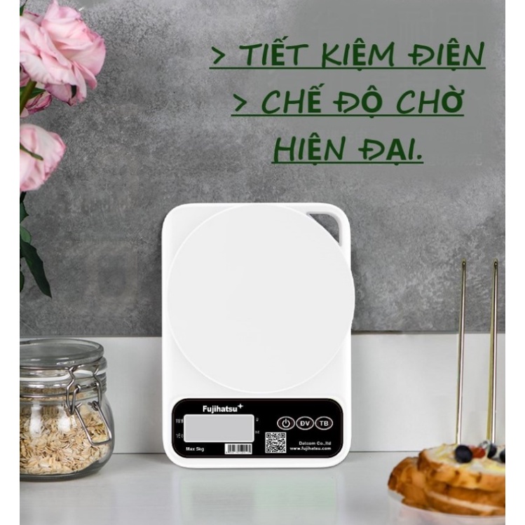 Cân Điện Tử, Chính Hãng Fujihatsu, Cân Điện Tử Nhà Bếp, Phiên Bản Tiếng Việt - Loại 5Kg - Có Chức Năng Trừ Bì