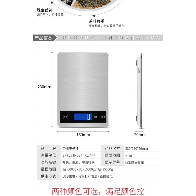 Nhà cửa & Đời sống > Dụng cụ nhà bếp > Cân nhà bếp || cân điện tử chống nước 15kg sạc tích điệnCòn hàng