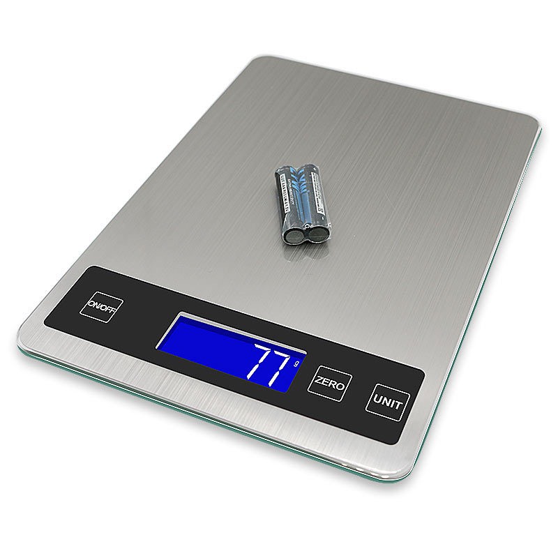 Số đo trọng lượng được hiển thị ở năm chế độ khác nhau, cụ thể là g , kg , Ib, oz, FL: oz, ml , bạn có thể tự do chuyển đổi bằng cách nhấn nút.