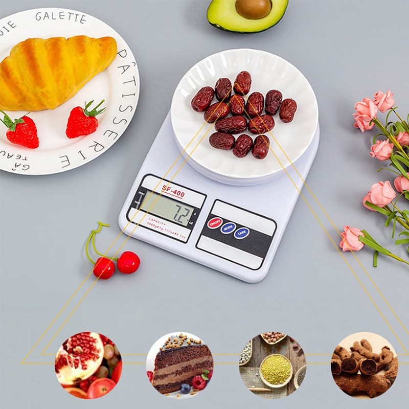 Cân điện tử nhà bếp tải trọng tối đa 10kg để kiểm tra trọng lượng vật hoặc gián tiếp định lượng Calorie cho mỗi khẩu phần ăn,
