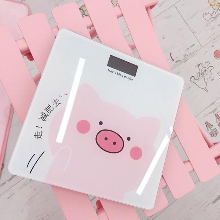Cân Điện Tử Màu Hồng Hình Chú Heo Nghộ Nghĩnh Tặng Thước Dây