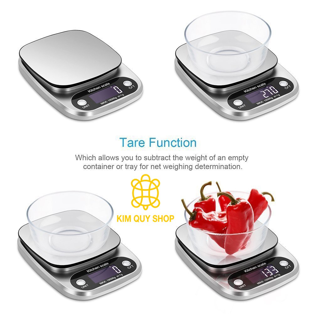 Dùng để cân bất cứ vật dụng gì bạn thích trong khoảng từ 1g-10kg ^^.Mặt cân làm bằng kim loại bền chắc với thời gian. mặt hiển thi bằng màn hình điện tử, chế độ TARE giúp dễ dàng cân dồn các sản phẩm liên tiếp. Có các đơn vị cân chuyển đổi từ g>lbs/oz>fl.oz>ml. Sản phẩm được tặng kèm 3 pin.