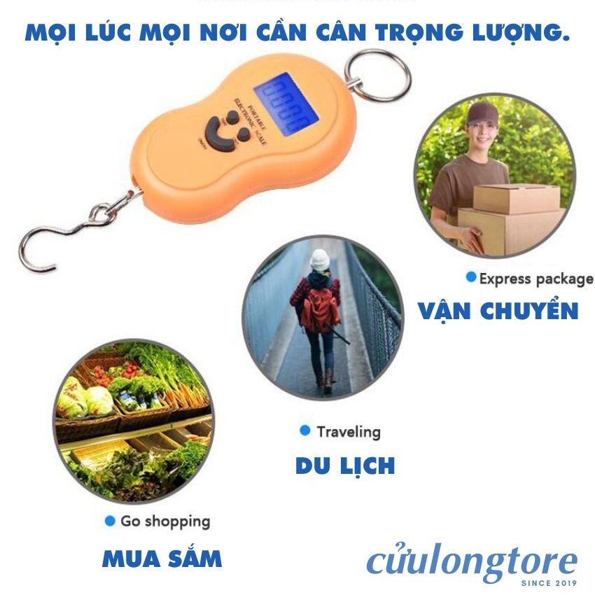Giới thiệu Cân Điện Tử Mini Cầm Tay Bỏ Túi gọn 50kg gia đình nhà bếp đi chợ cân hàng chính xác treo móc khóa thông minh chính hãng