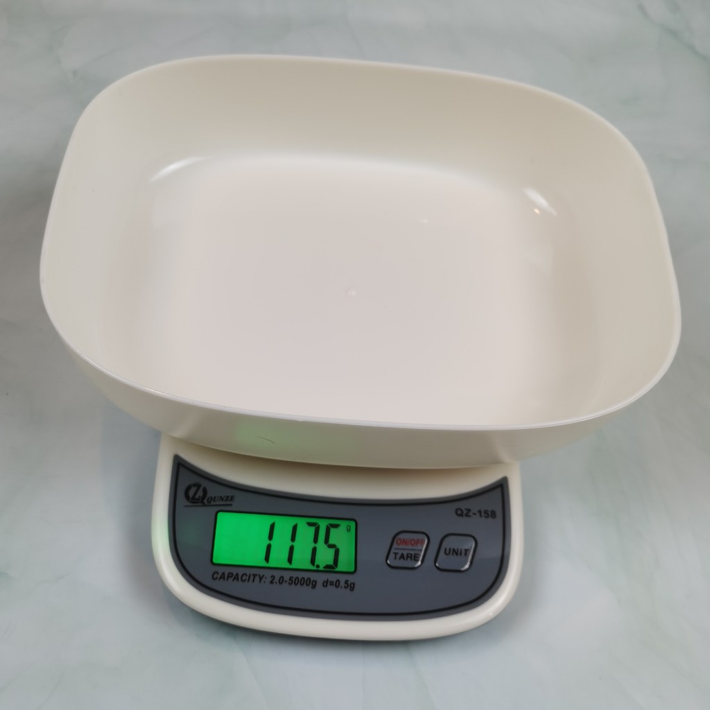 Cân Điện Tử Mini Nhà Bếp QZ 158 5kg/0.5gr Tặng Kèm Pin Và Khay ( Bảo Hành 1năm )