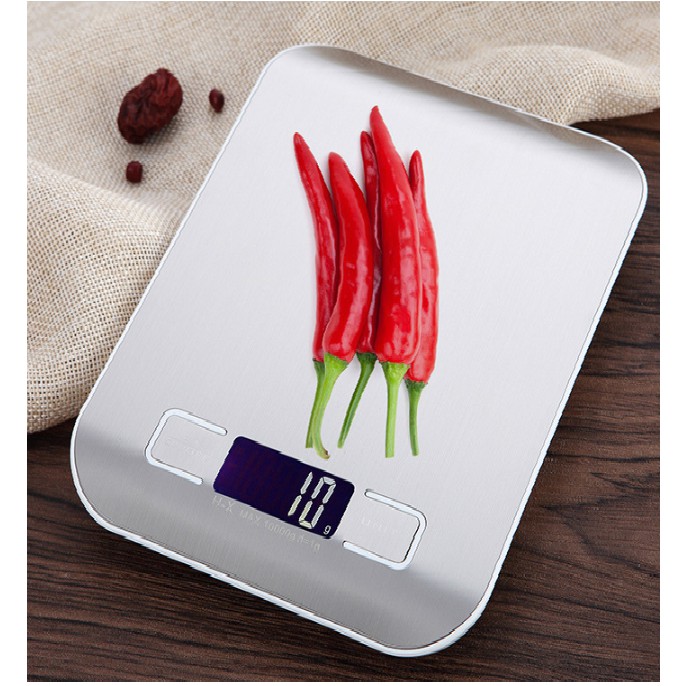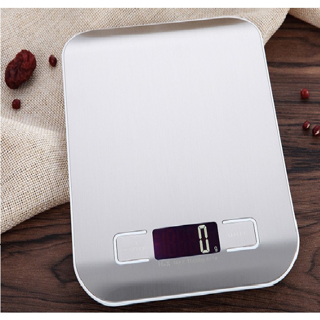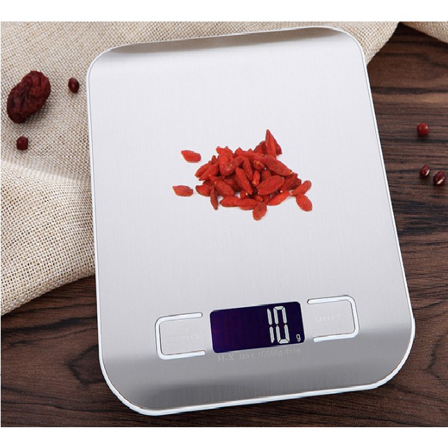 Cân điện tử nhà bếp 10kG (10.000g) độ chia 1g mặt full inox siêu đẹp siêu bền có pin sạc