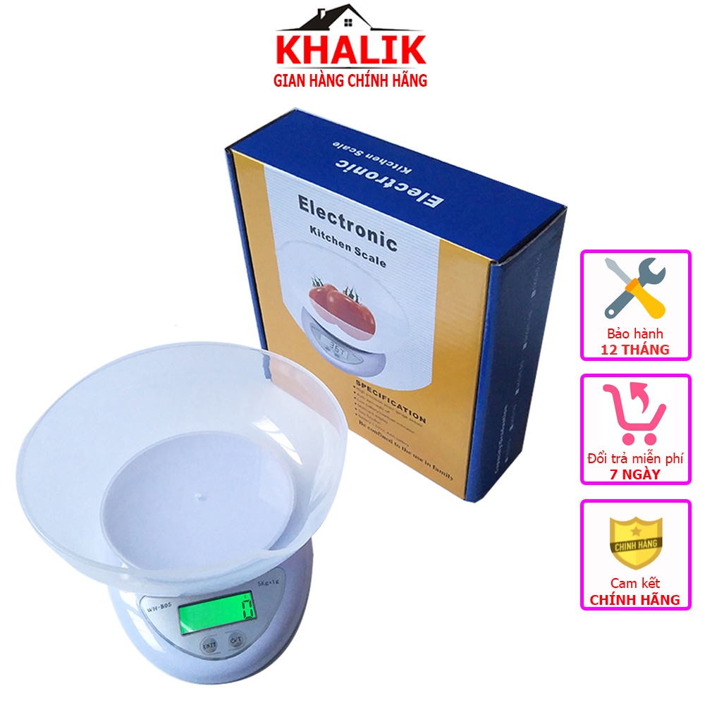 Cân điện tử nhà bếp 5kg/1g KHALIK WH-B05 có kèm tô đựng dùng pin độ chính xác cao - Fullbox