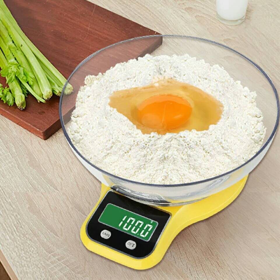 Cân Điện Tử Nhà Bếp 5kg/1gr ( Bảo Hành 12 Tháng ) Màu Vàng Tặng tô