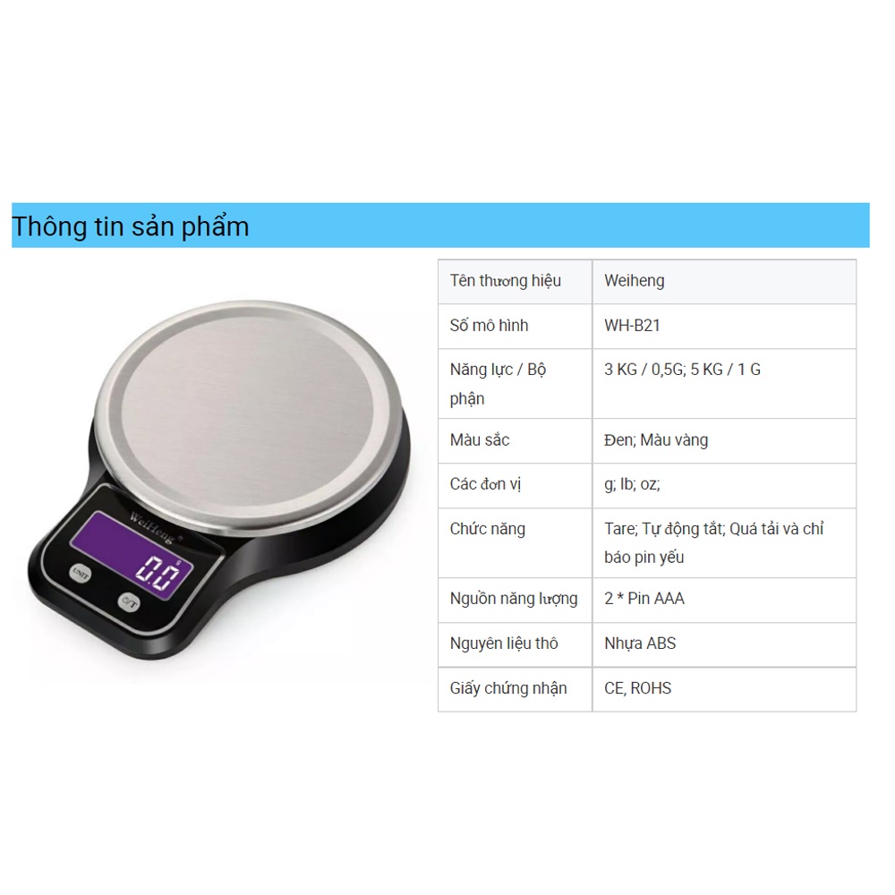 Cân điện tử nhà bếp 5kg 3KG KHALIK WH-B21 có kèm tô đựng dùng pin độ chính xác cao - FullboxLOẠI CHÍNH HÃNG FULLBOX.