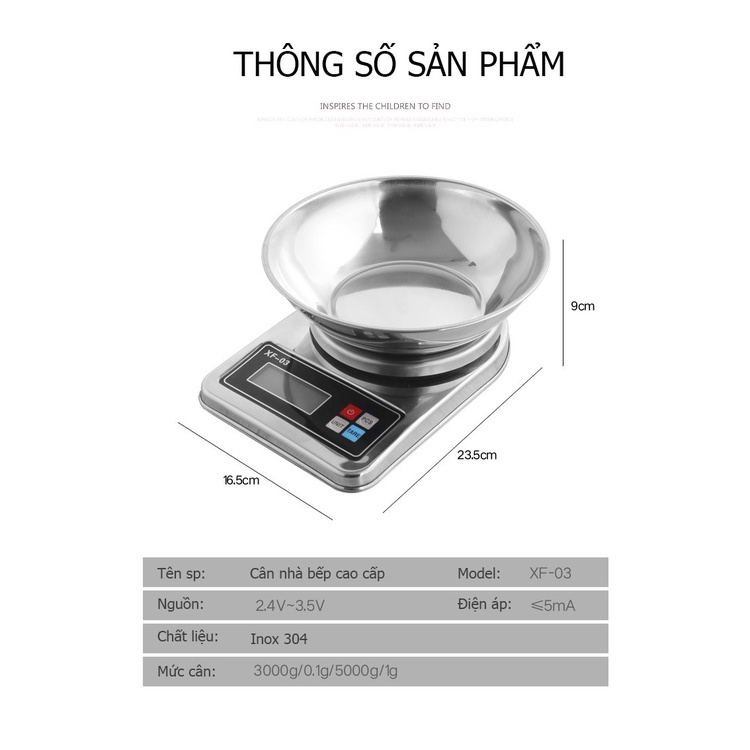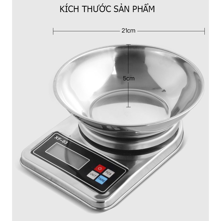 Nhà cửa & Đời sống > Dụng cụ nhà bếp > Cân nhà bếp || Cân điện tử nhà bếp chính xác XF-03 bằng inox có kèm tô đựngCòn hàng