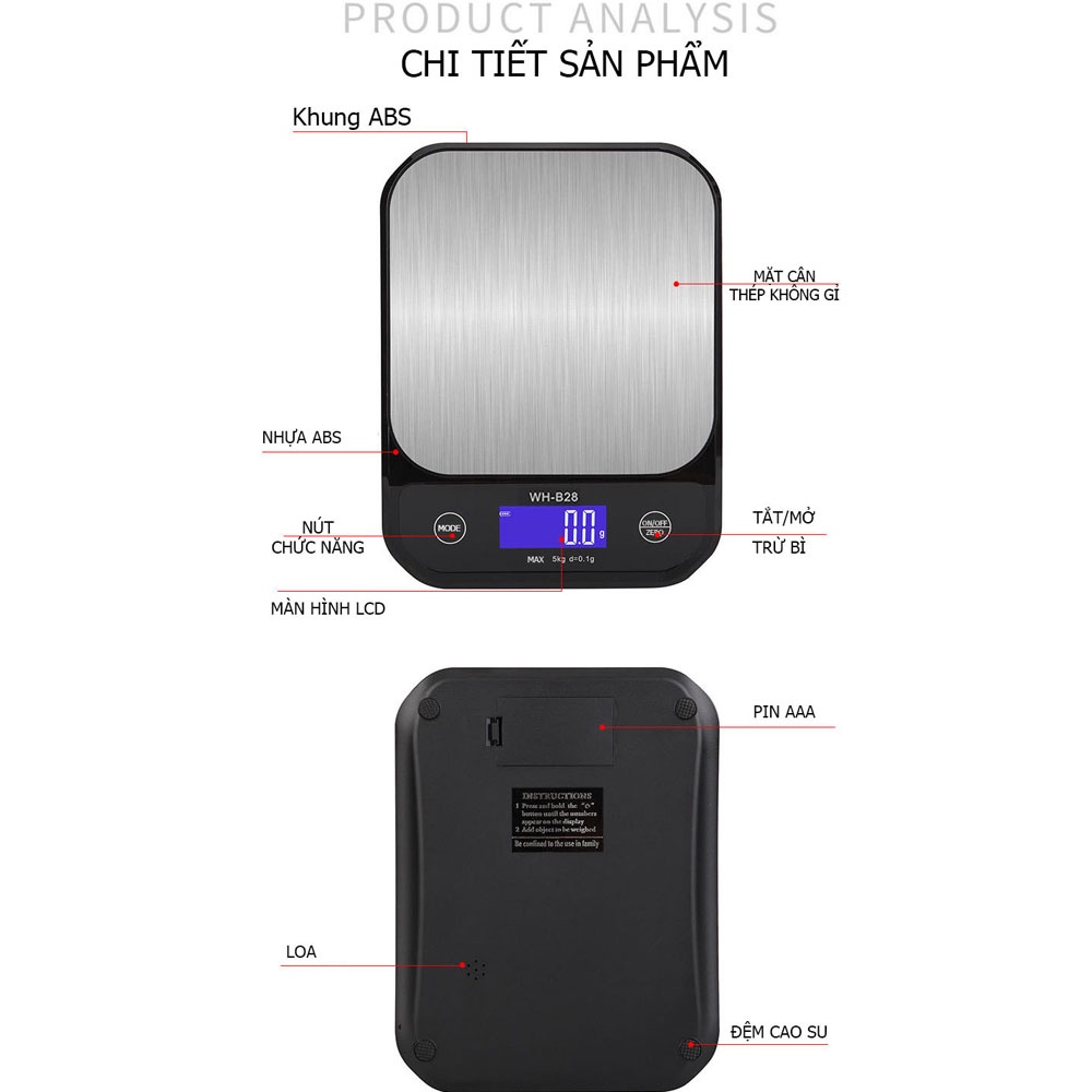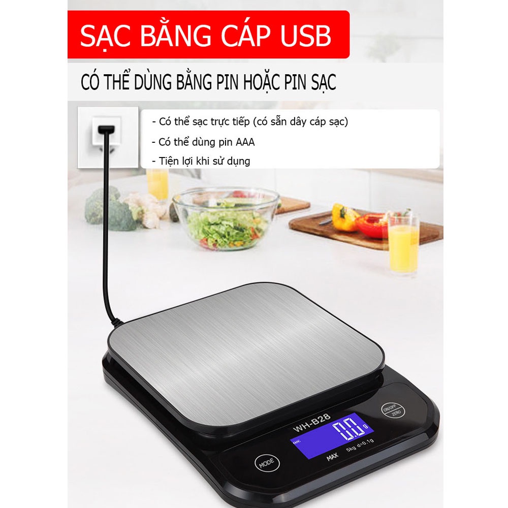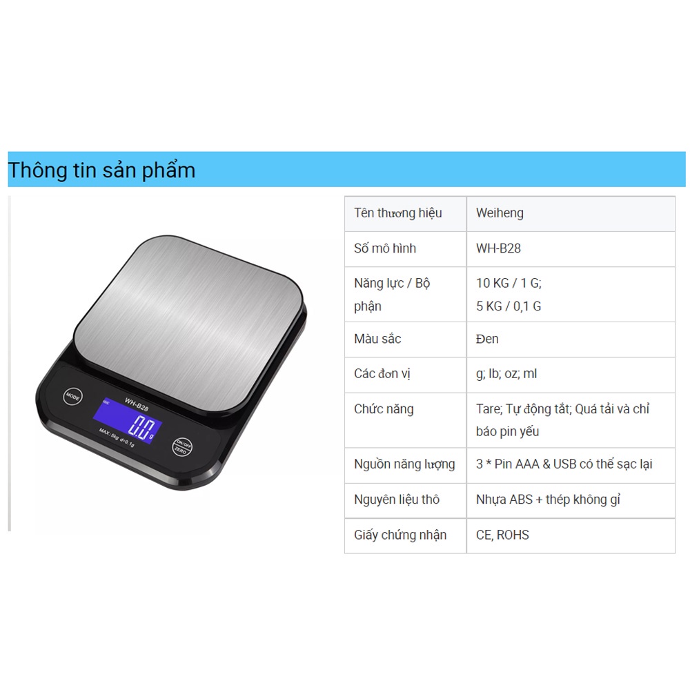 Cân điện tử nhà bếp chịu nước pin sạc lại KHALIK WH-B28 siêu bền độ chính xác cao - FullboxLOẠI CHÍNH HÃNG FULLBOX.