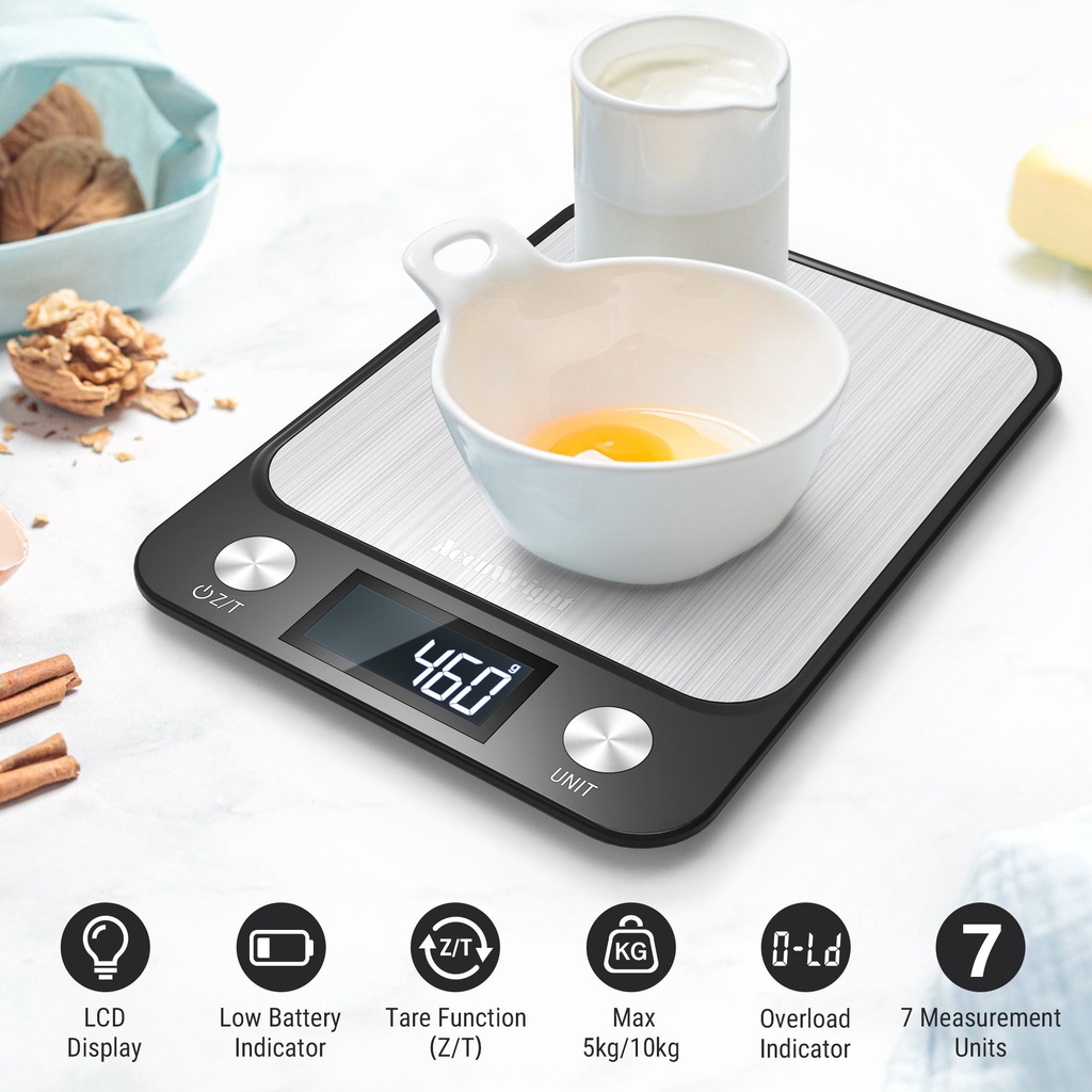 Cân nhà bếp kỹ thuật số được trang bị các cảm biến có độ chính xác cao để cung cấp cho bạn các kết quả đọc chính xác nhất để đảm bảo các công thức nấu ăn của bạn luôn hoàn hảo. Tăng 0,1 oz / 1 gam khi thêm thành phần, phạm vi đo: 0,1 oz đến 11 pao (3 gam đến 5 kilôgam)