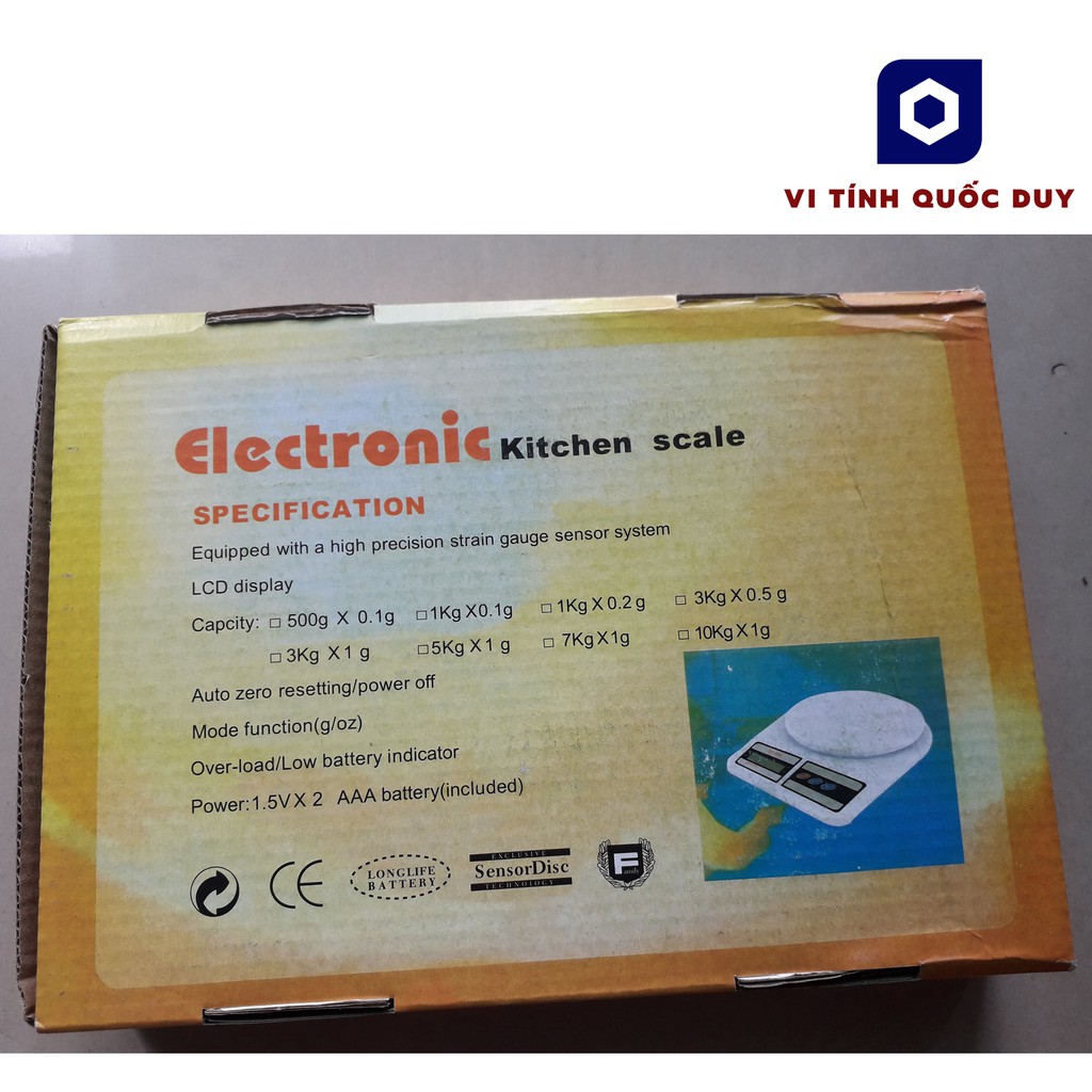 Nhà cửa & Đời sống > Dụng cụ nhà bếp > Cân nhà bếp || Cân Điện Tử Nhà Bếp Giá Rẻ. Max 7kg. Nhỏ gọn. Màu trắng. Tặng kèm 2 viên Pin 2A. Vi Tính Quốc DuyCòn hàng