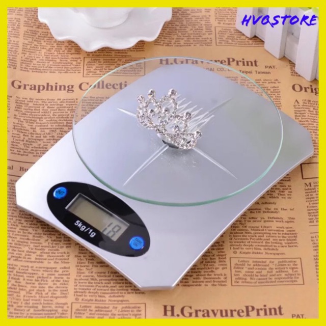 Cân điện tử nhà bếp HVQ KE-5 mặt kính cường lực cực chính xác và tiện dụng tặng kèm pin