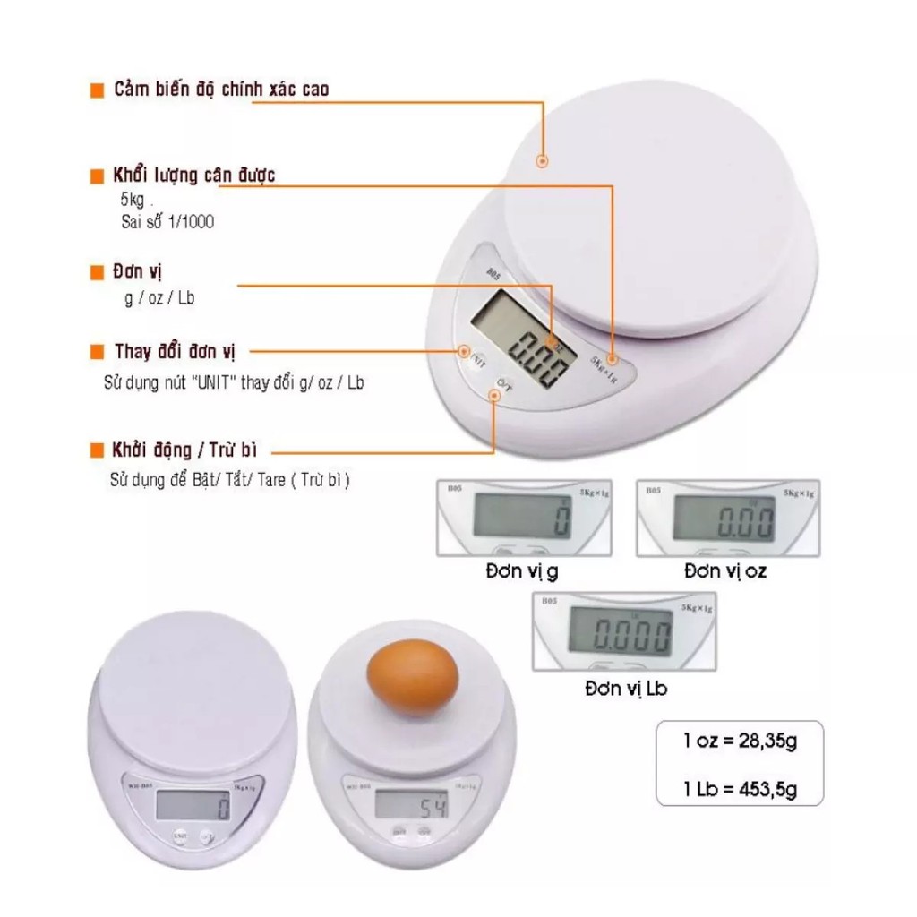 Thông tin chi tiết sản phẩm Cân Điện Tử Nhà Bếp 5kg electronic kitchen scale: