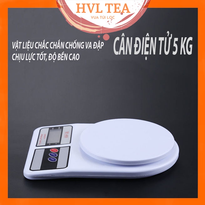 Bộ cân điện tử nhà bếp mini màn hình LCD 5kg, 16.5 x 12.8 x 3.2cm - HVL TEA