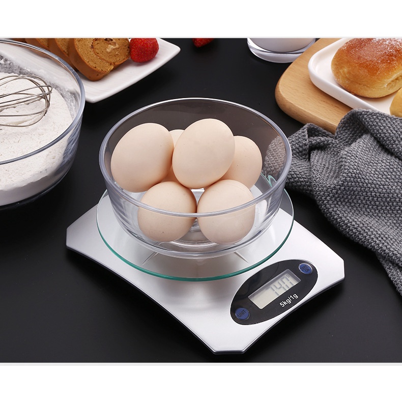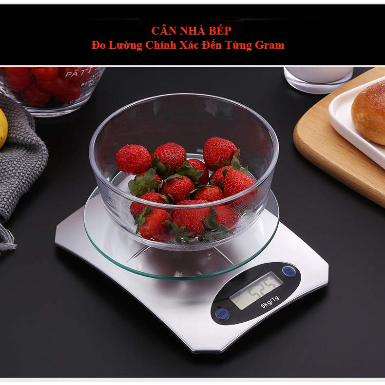 Cân điện tử nhà bếp tiểu ly (5kg - 1g) cân thực phẩm mặt kính cường lực màn hình LCD