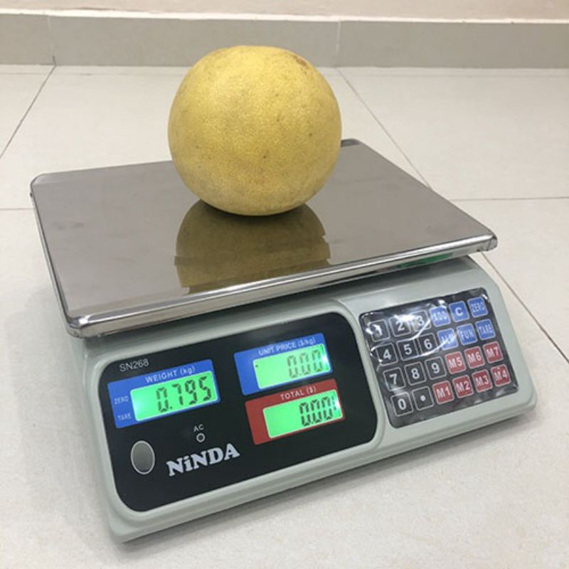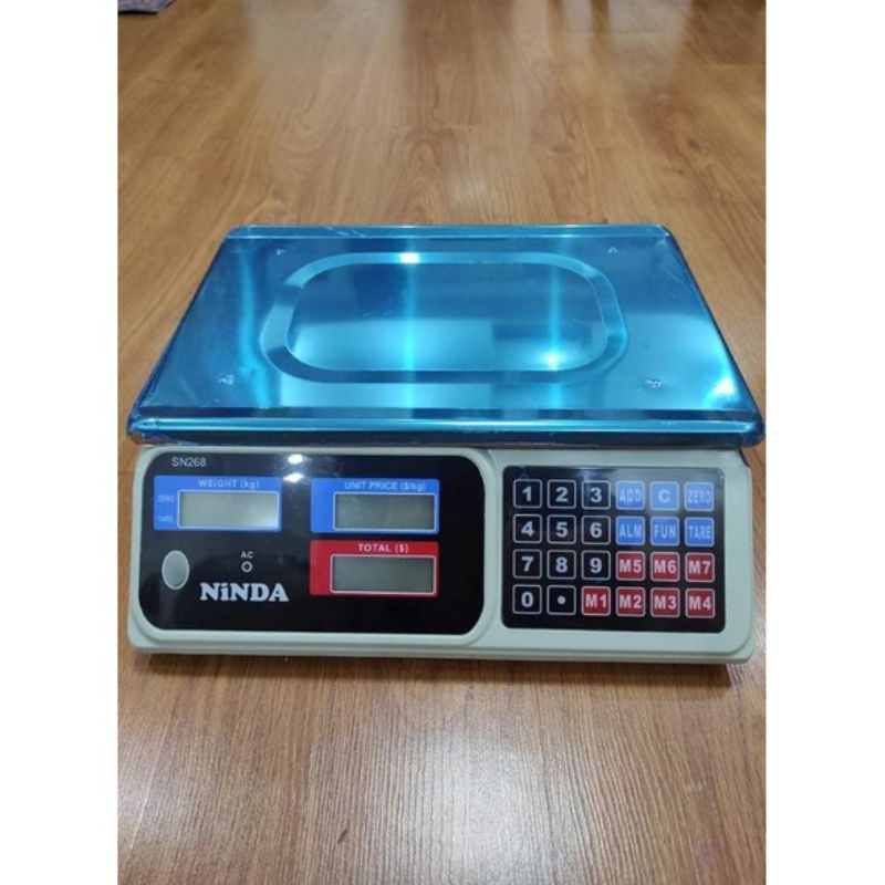 Cân điện tử NiNDA SN268 có hiển thị giá bán, trọng lượng, thành tiền
