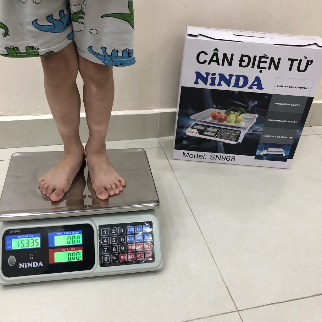 Cân điện tử NiNDA SN968 có hiển thị giá bán, trọng lượng, thành tiền
