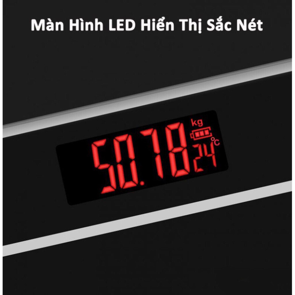 - Mặt cân sử dụng kính cường lực cao cấp bền bỉ và sang trọng.