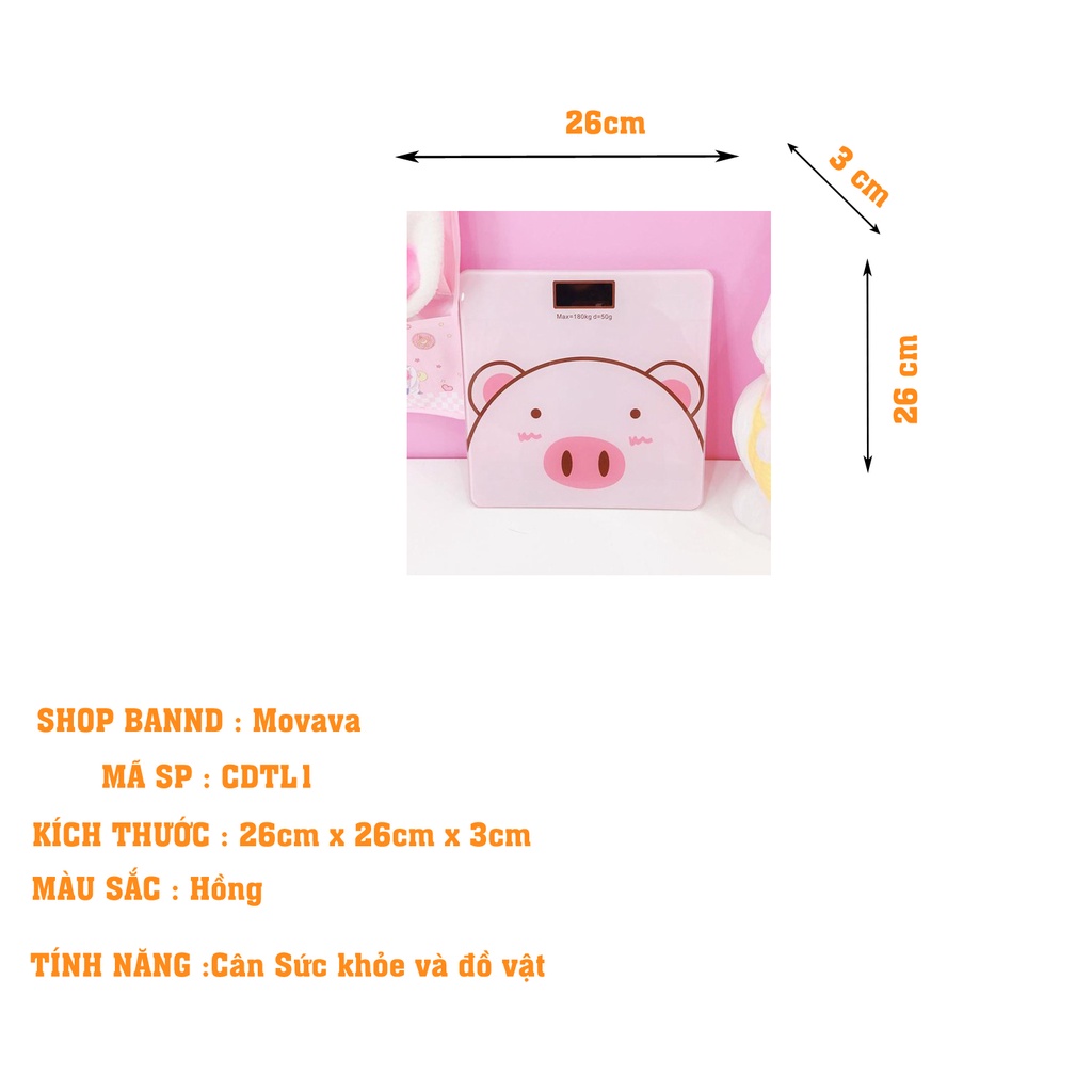 Giới thiệu Cân điện tử sức khỏe Hình lợn hồng kute độ chính xác cao (tặng kèm pin và dây do ) Shop Movava - CDTL1